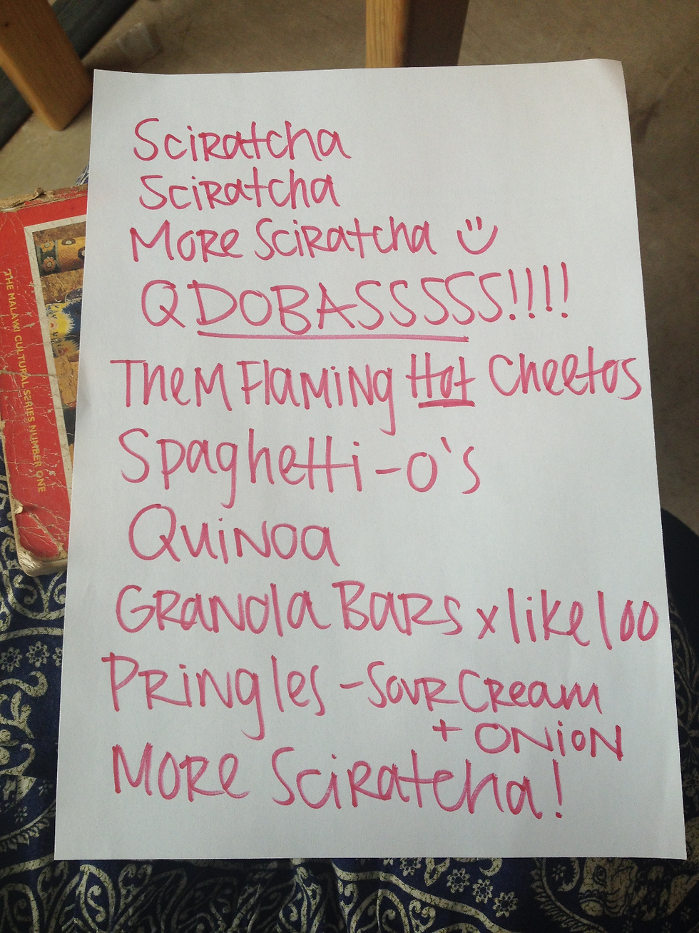 “‘4 lbs of siratcha, freshly made qdobass, and 150 lbs of Sarah they're on their way to Malawi. This may be the best day ever’ - Katlyn Saley. I'm coming for ya best friend, see you soon!” –Sarah Strong